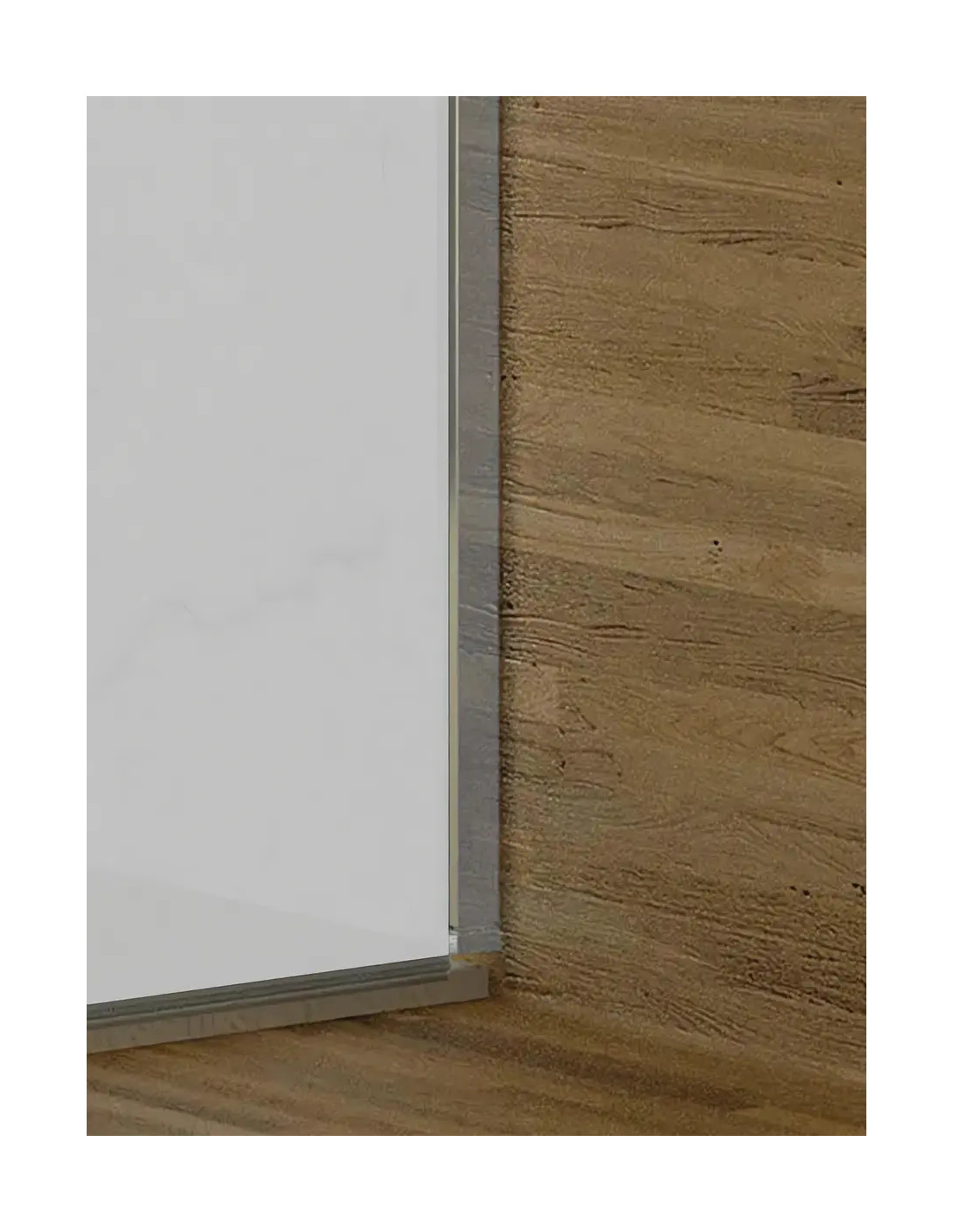 Mampara de ducha, cristal fijo transparente de 8 mm y una altura de 200 cm. Perfilería a la pared y barra de sujeción de aluminio anodizado pulido con terminación en plata brillo o negro. Barra de sujeción recortable de 90 cm de largo.