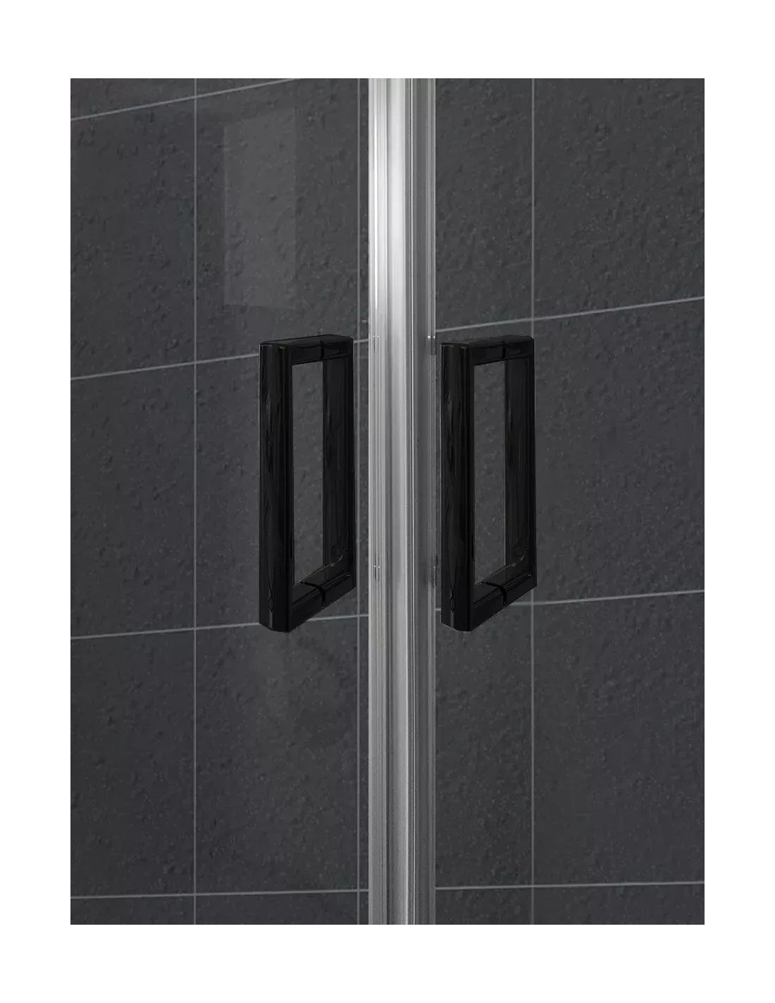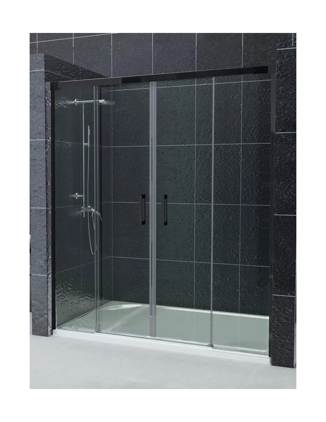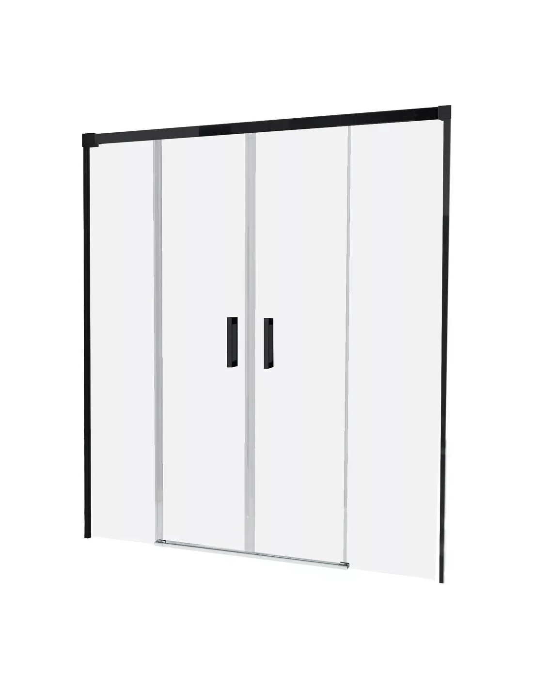 Mampara de ducha Frontal 2 fijos con 2 correderas perfil negro cristal transparente - modelo Contract