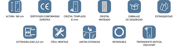 Mampara ducha frontal 2 fijos y 2 correderas modelo Contract - Altura 195 cm, 6 mm de grosor, ancho a elegir. Cristal mateado.