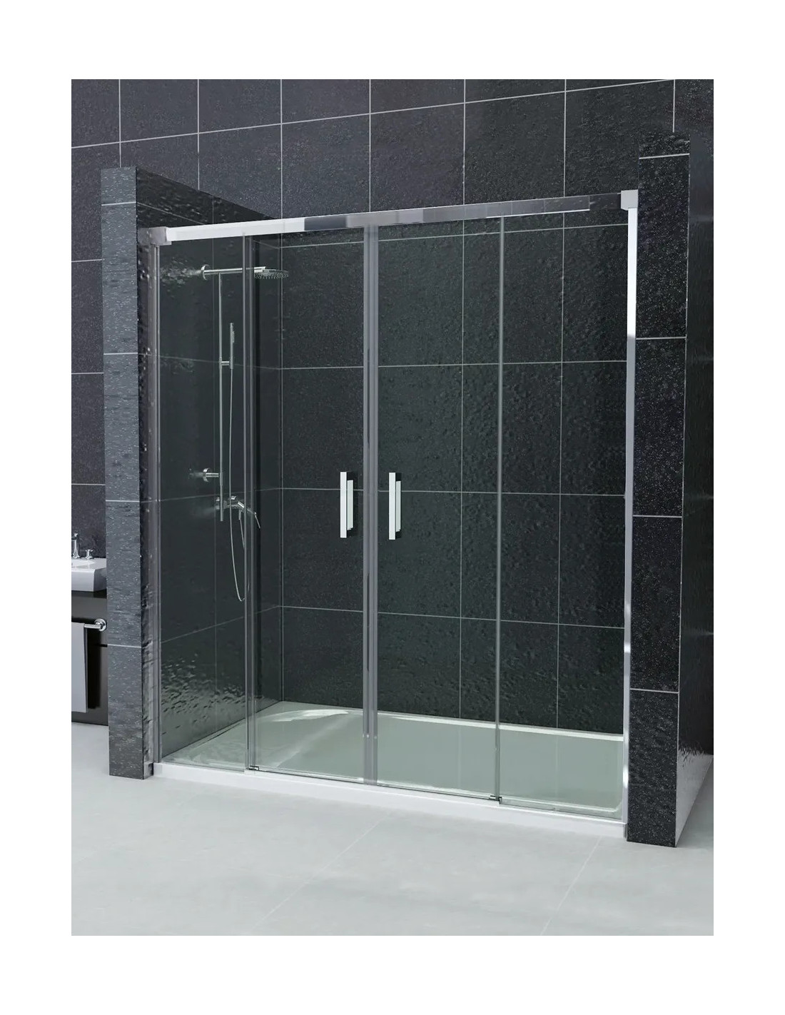 Mampara de ducha Frontal 2 fijos con 2 correderas transparente - modelo Contract