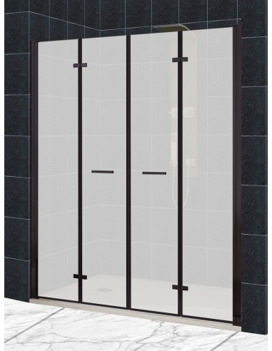 Mampara de ducha formada por dos puertas plegables, perfilería plata brillo o negro mate, modelo Zen.