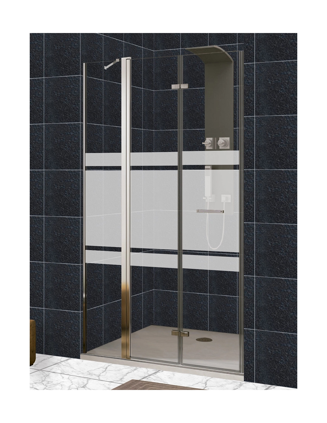 Mampara frontal puerta plegable con fijo en línea, cierre a pared - modelo Zen